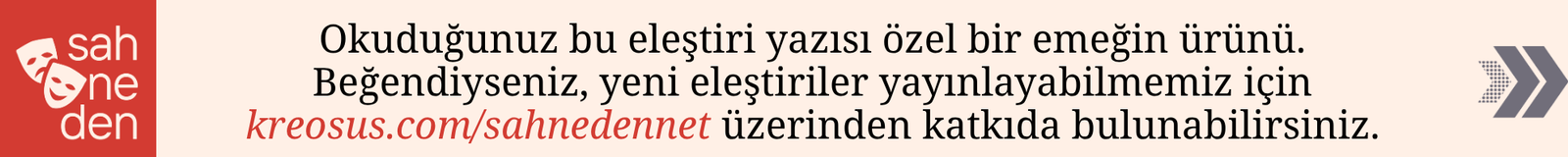 Not düşmeden geçmeyeyim: Benim izlediğim temsilde sahne önündeki kafede dolaşıp kendini sevdiren, oyun boyunca izleyicinin önünde ve sarı çizginin tam üzerinde yatarak sessiz ama önemli bir mesaj veren, oyunun en civcivli anında güçlü havlamaları ve uyarı hareketleriyle hikâyenin akışına dramatik biçimde dahil olan köpek arkadaş da bir hayli başarılıydı. Posthuman tiyatro adına umut veren bu arkadaşın anlaşması umarım tek seferlik değildir; yevmiyesini de almıştır.