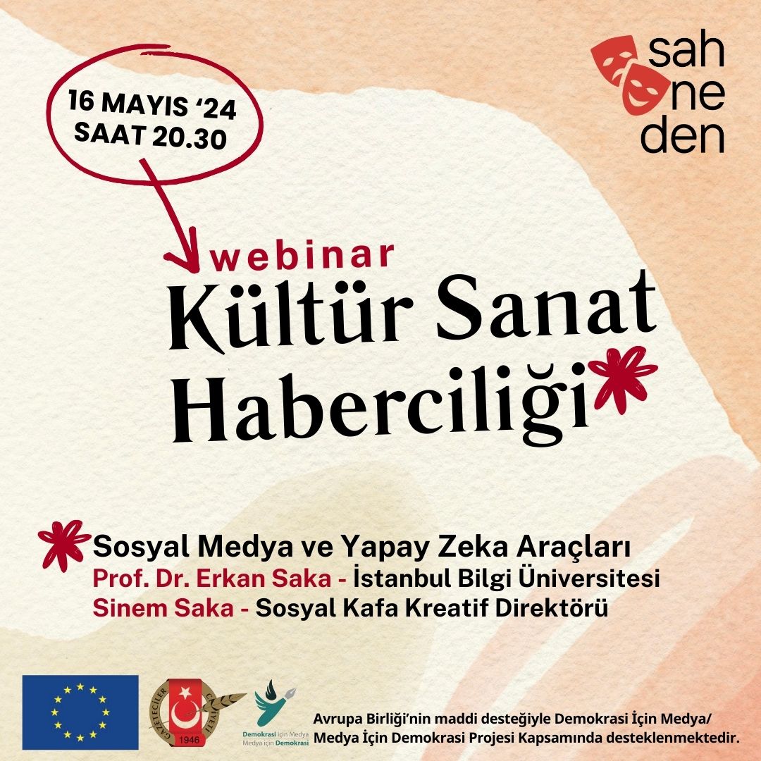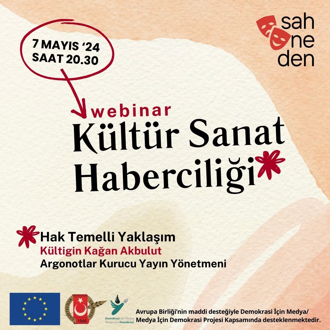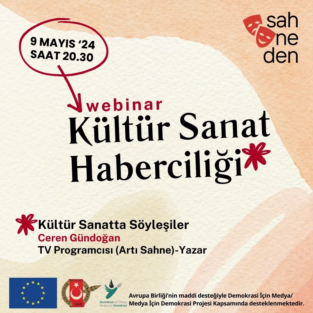 2 Mayıs’ta başlayacak olan webinar serisinde “Kültür Sanat Haberciliğinin Konu, Yöntem ve İncelikleri”, “Kültür Sanat Haberciliğine Hak Temelli Yaklaşım”, “Kültür Sanat Söyleşileri”, “Kültür Sanat Medyası Yaratmak”, “Kültür Sanat Habercileri için Sosyal Medya ve Yapay Zeka Araçları” başlıklarında sunumlar yapılacak.