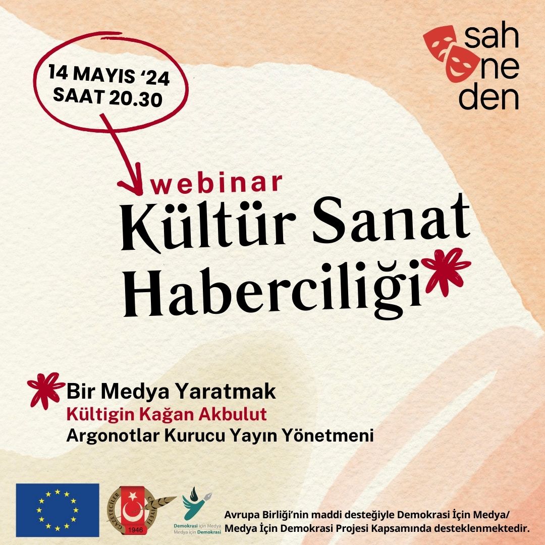 Sahneden, “Kültür Sanat Haberciliği” başlıklı bir webinar serisi düzenliyor. 5 ayrı modül ile gerçekleşecek olan eğitimde kültür sanat haberciliğinin farklı yönleri ele alınacak, uzman gazeteci ve eğitmenler deneyimlerini aktaracak.
